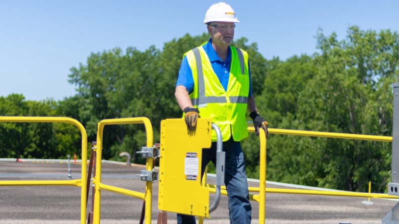 The Adjustable Spring-Loaded Self-closing Safety Gate โ 17โณ-48โณ is an OSHA compliant gate that protect workers from falls, or limit access to hazardous areas such as guardrail and ladder entrances. This accessory is used with theSteel Non-penetrating Modular Guardrails & Steel Fixedย Modular Guardrails system.