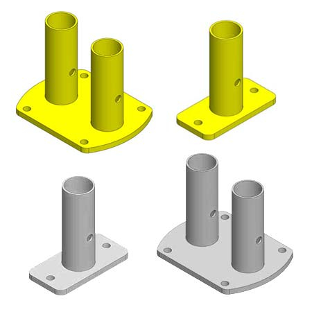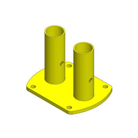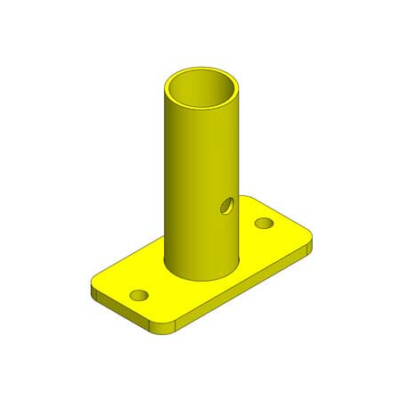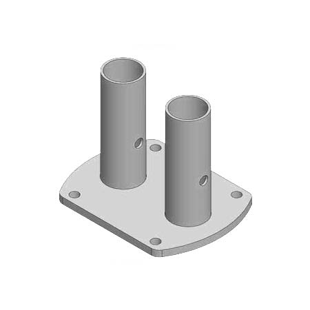 This Double โTop Floorโ Base Mount is anchored to the floor securing two tube rails in an upright position, while the Single โTop Floorโ Base Mount secures one tube rail and acts as a Finishing Kit to start and end rail runs. These mounts are anchored on rooftops, loading docks, parapet walls, open pits or truck wells.
