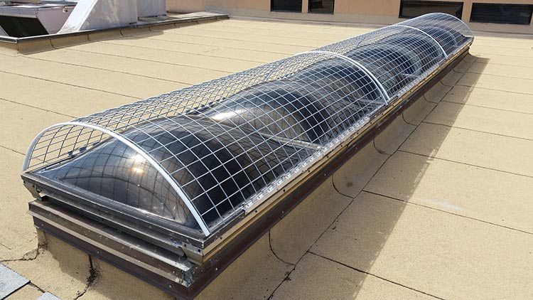 Provides protection from falls through acrylic dome skylights