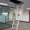 Our Fold Down Ladders are ideally suited to access roof and ceiling areas from inside the building. Its easy operation, using gas strut assisted opening and closing, provides additional safety when using this ladder. The fold down ladders are supported in place with a suspension kit. These suspension kits are available in various sizes to accommodate different heights and be cut down in the field for a perfect fit.