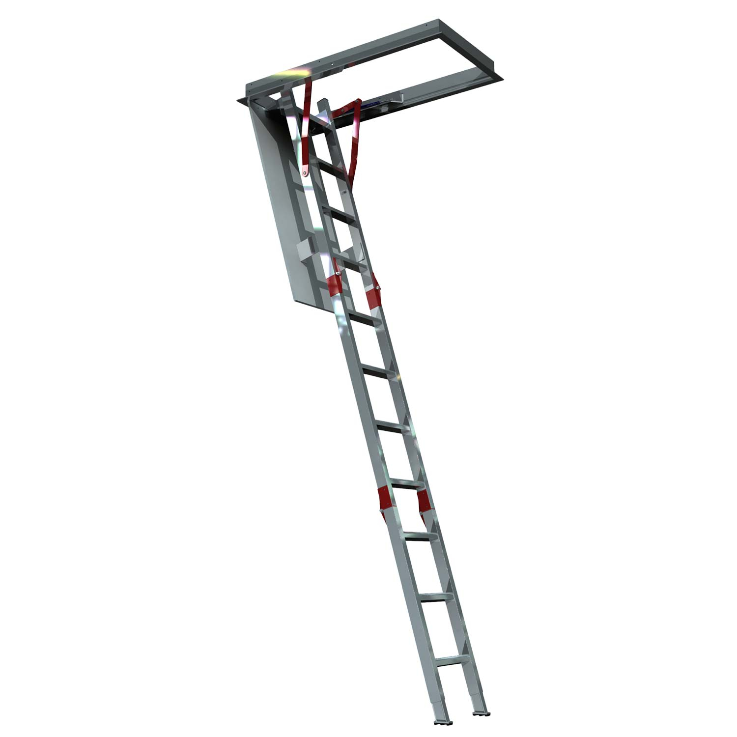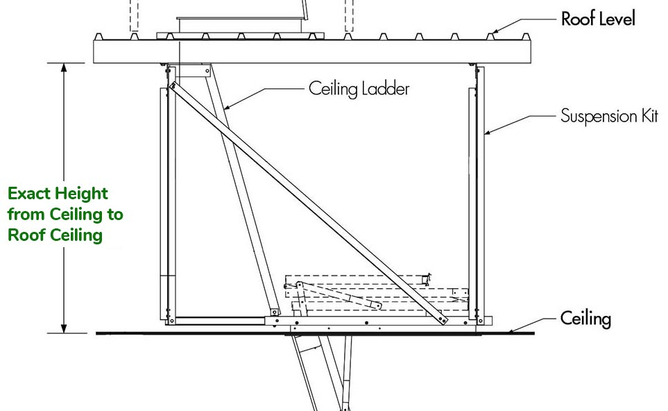 Our Fold Down Ladders are ideally suited to access roof and ceiling areas from inside the building. Its easy operation, using gas strut assisted opening and closing, provides additional safety when using this ladder. The fold down ladders are supported in place with a suspension kit. These suspension kits are available in various sizes to accommodate different heights and be cut down in the field for a perfect fit.