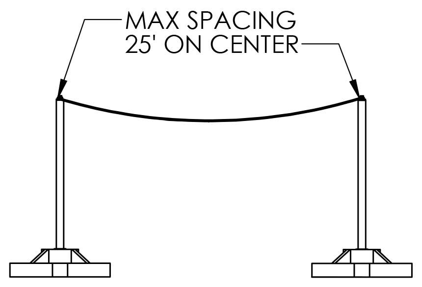 Bases/Counterweights must be placed at required intervals of 25 feet or less to be OSHA compliant.