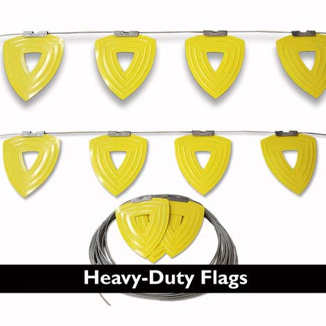 RUGGED Heavy duty base plates, plastic coated cable and your choice of high density plastic pennants or metal pennants.