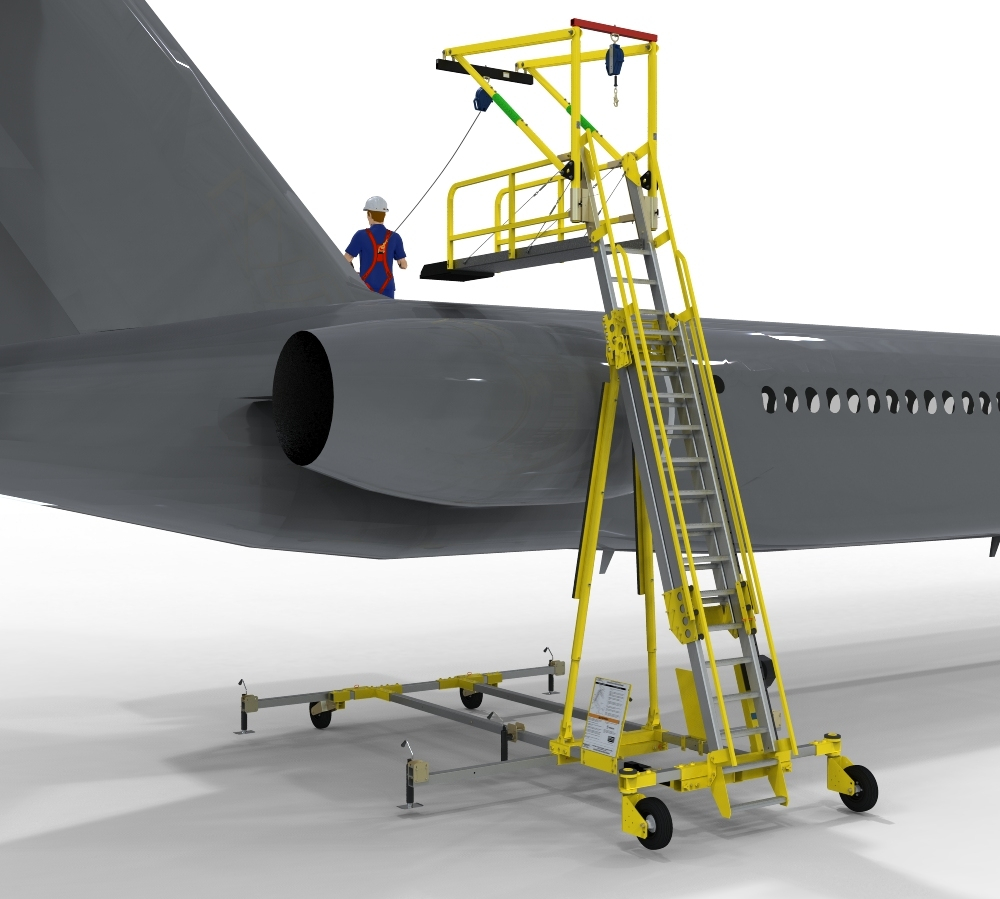 A fall protection system will only get used if productivity is enhanced. The Anchor & Ladder System was designed for quick set up and can be collapsed when not in use to save space. An added feature is the foam protected platform which protects the surface of the aircraft from contact with the safety system.