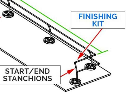 Finishing Kit (required for open ends): A 5ft. 90-degree return kit is required at the start and stop of any Non-penetrating freestanding guardrail system regardless of length. This geometry ensures the system meets the loads required per OSHA.