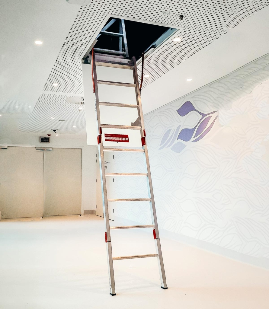 Our Fold Down Ladders are ideally suited to access roof and ceiling areas from inside the building. It’s easy operation, using gas strut assisted opening and closing, provides additional safety when using this ladder.